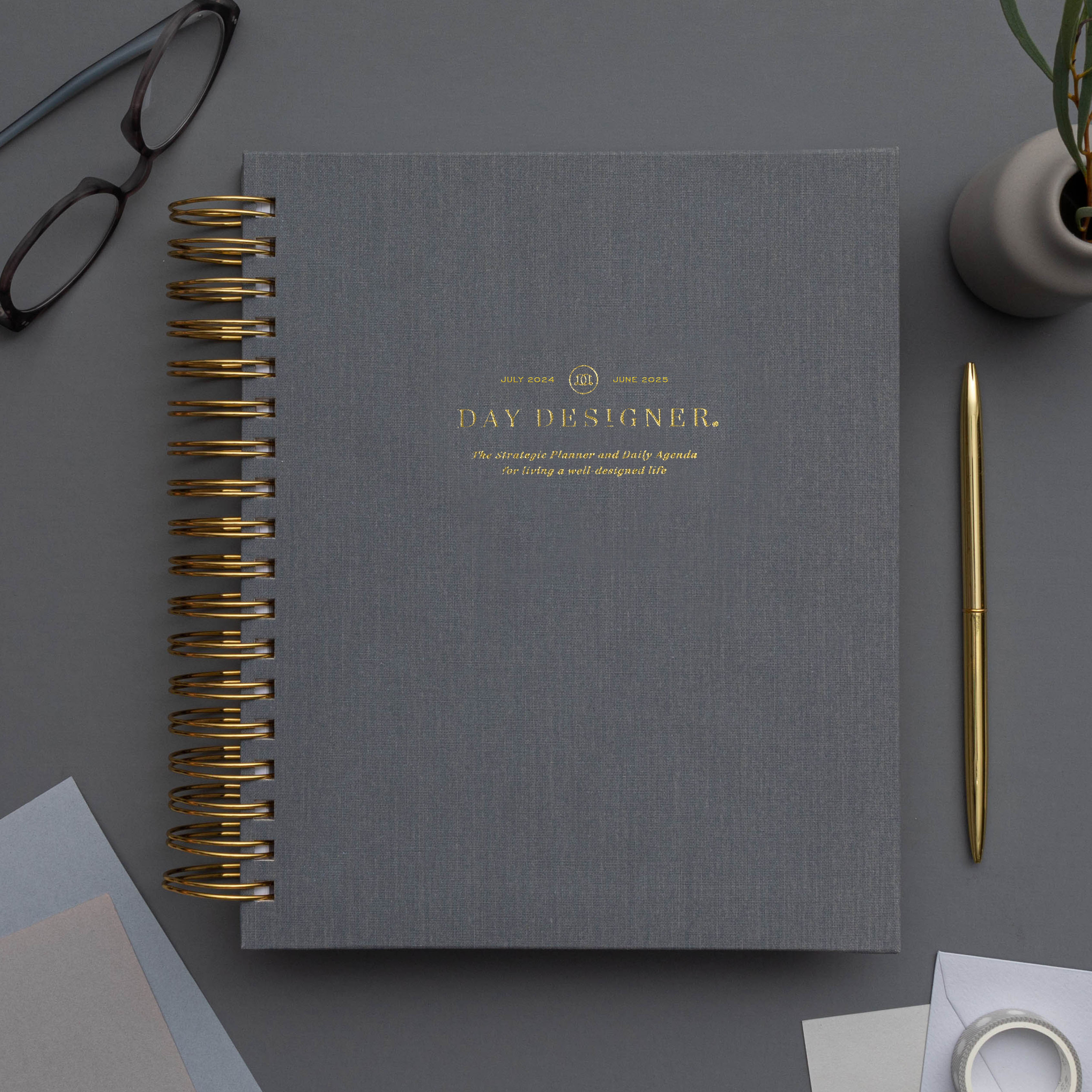 2024 25 Academic Year | Daily Planner Charcoal Bookcloth | Day